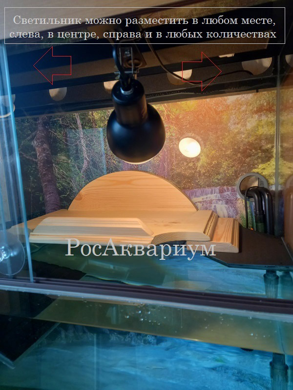 • Крепёжное ребро, для крепления тепловых светильников, либо одного. Светильник Е-27 легко перемещается вдоль всего террариума, можно установить слева, можно справа, в любом месте, в любом количестве.