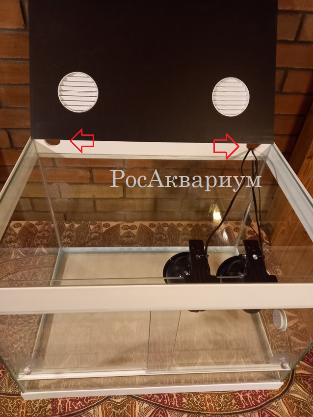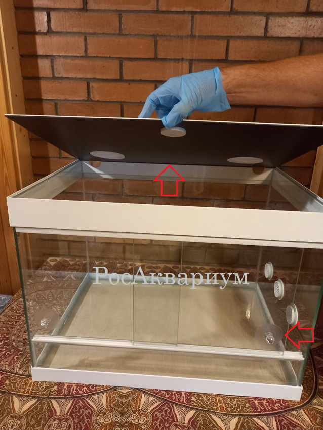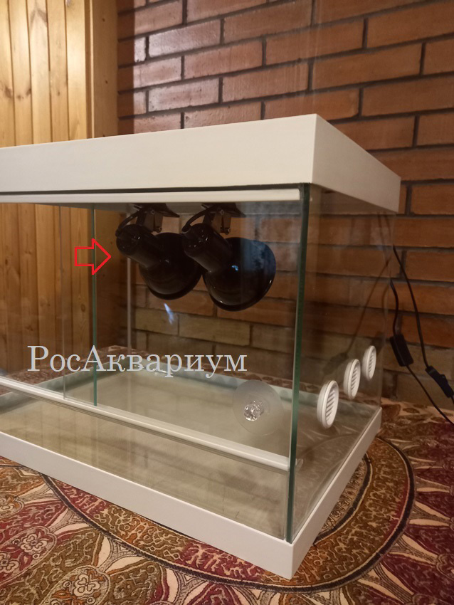 • Ребро на потолке для установки светильников (его не видно на фото, ребро позволяет перемещать светильники в любом направление, можно установить в правую область, можно в центр, можно в левую область террариума, очень удобно и функционально).